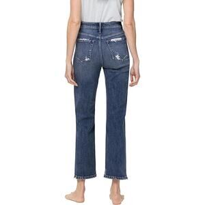 These distressed high rise stretch ankle straight jeans provide irresistible comfort and style. Crafted from comfort stretch denim for a flexible fit, they feature minor distressed detailing for an edgy look. A high rise waistband and ankle length cut to add a modern feel.