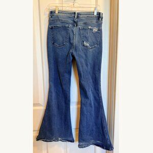 Flying Monkey High Rise Super Flare Jeans Size 28 Medium Wash Distressed Hem