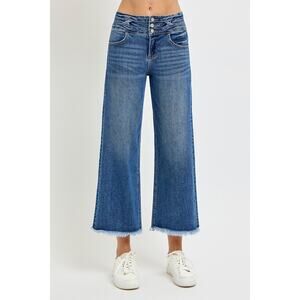 Flying Monkey High Rise Uneven Raw Hem Crop Straight Jeans - F5183 - Size 24