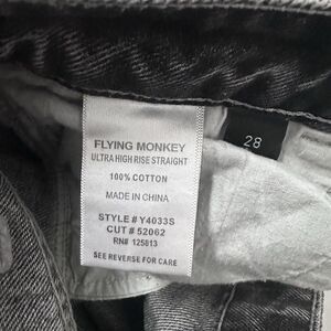 Flying Monkey Jeans Womens Ultra High Rise Black Straight Raw Hem Distressed 28