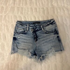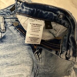 Size 27 Mid-Rise Flying Monkey brand jean shorts bought from Buckle. The waist crosses in the front for a super cute look.