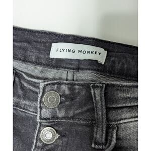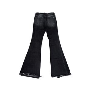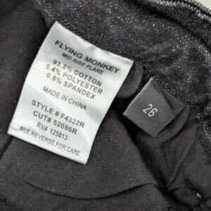 Flying Monkey Mid-Rise Flare Stretch Jeans Wind Snap Faded Chewed Hem Ripped 26