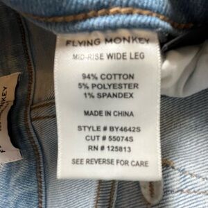 Flying Monkey Mid-rise Wide-leg Light wash Jeans, distressed pocket, size 24