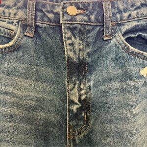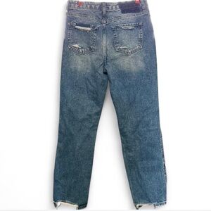 Ultra high rise straight distressed jeans