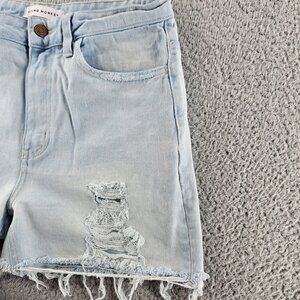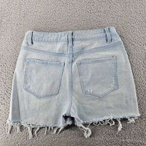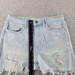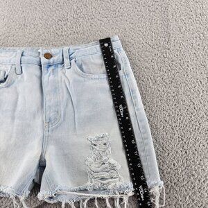 Flying Monkey Shorts Womens 26 Light Wash Blue Distressed Frayed Denim High Rise