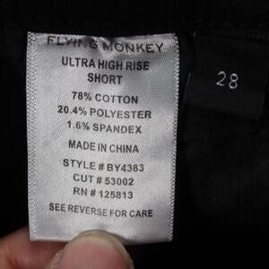 Flying Monkey Shorts Womens 28 Black Ultra High Rise Raw Hem Stretch