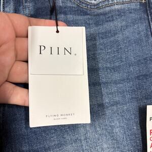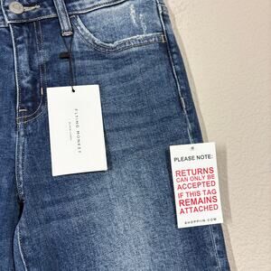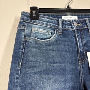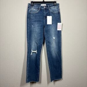 Flying Monkey Womens Size 26 Straight Leg Jeans Blue Washed Distressed High Rise Raw Hem Stretch Pockets