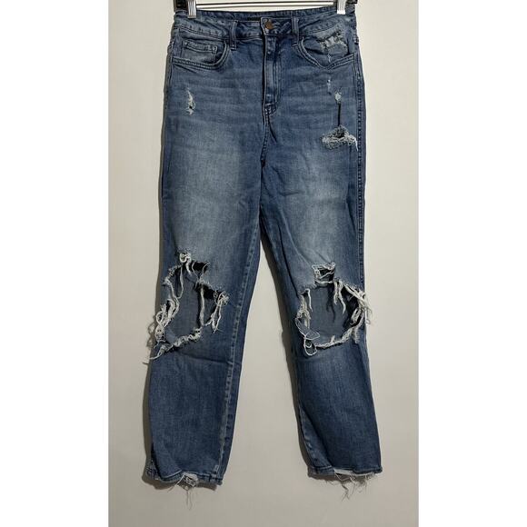Flying Monkey Ultra High Rise Ankle Blue Rip Distressed Straight Jeans Size 27