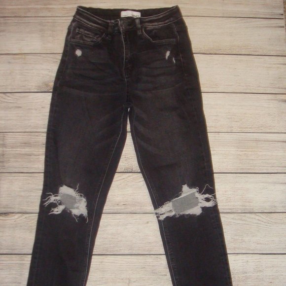 Flying Monkey Vervet Black Distressed 11" Rise Remi Mom Jeans 26