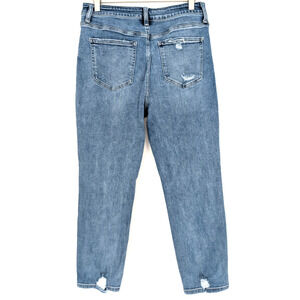 Flying Monkey Womens High Rise Destructed Hem Crop Straight Medium Rinse Jean 30