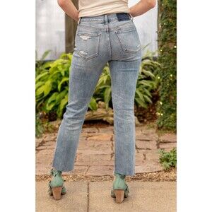 Flying Monkey Women's High Rise Slim Straight Crop Jeans Size 32 Stretch Denim