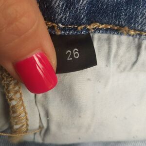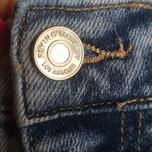 Flying Monkey high waisted distressed light wash jeans shorts, size 26