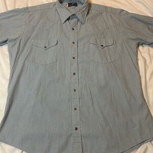 Flying R Ranchwear Shirt Men L Blue Plaid Pearl Snap Short Sleeve Cowboy Western