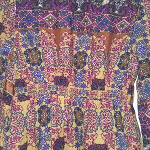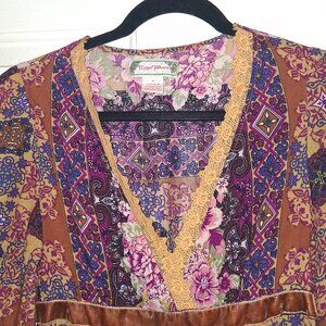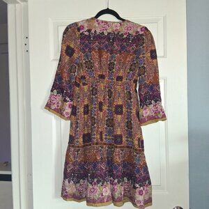 Flying Tomato 3/4 Sleeve dress Velvet Trim Bohemian Floral Print