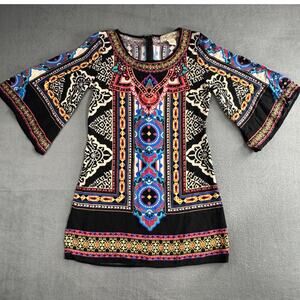 Flying Tomato Anthropologie Dress Print A-Line Shift Bell Sleeve Boho SMALL