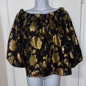 Flying Tomato Avara Ashley Top Gold Metallic black Off the shoulder medium NWT