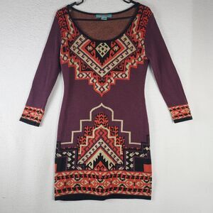 Flying Tomato Aztec Boho Bodycon Knit Dress Womens Small Purple Red Orange