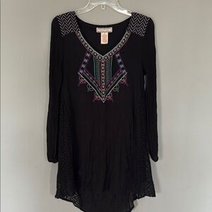 Flying Tomato Black Tunic Dress with Embroidery Size Small