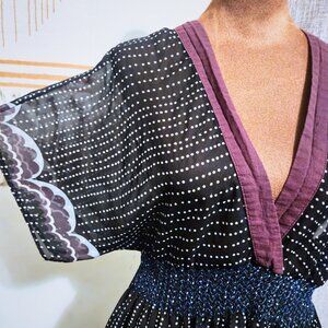 ๐ Tags: Flying Tomato, vintage tunic, 2000s top, kimono blouse, boho chic, sheer top, fall layering, cottagecore, eclectic boho, festival style, polka dot top, scalloped blouse, statement top, transitional wardrobe