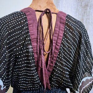 Flying Tomato Black and White Polka Dot Kimono Tunic Top | Fairy & Boho | Size L