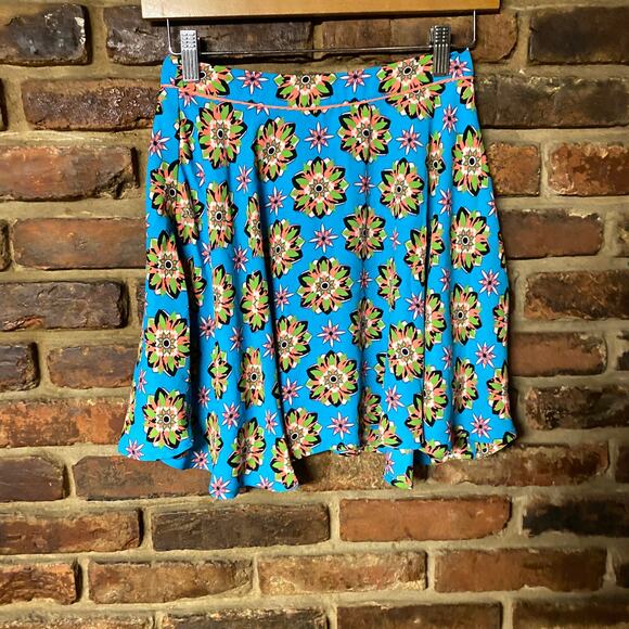 Flying Tomato Blue Neon Floral Print Stretchy Mini Skirt Women's Size Small