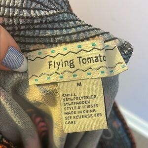 Flying Tomato Boho Black Floral Off Shoulder Smocked Blouse size M. Very good preowned condition. This adorable black shift top features lightweight material patterned with a colorful floral print, an off-the-shoulder fit with a straight neckline, short loose sleeves, and a relaxed silhouette that falls into a straight hemline! See pictures for approximate measurements.