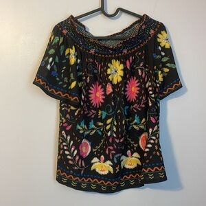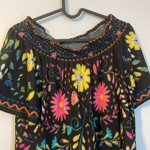 Flying Tomato Boho Black Floral Off Shoulder Smocked Blouse size M