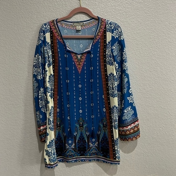 Flying Tomato Boho styleTunic With Bell Sleeves Size Medium, Blue