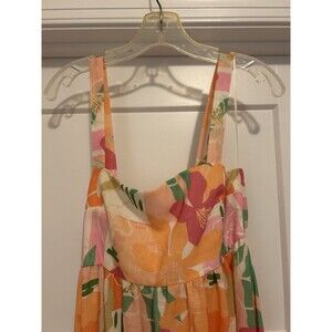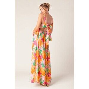 The Flying Tomato Bon Voyage Maxi Dress in size Large is a vibrant and stylish option for various occasions such as vacation, resort cruise, or wedding. Featuring a floral pattern, sleeveless design with a square neckline and strappy sleeves, this dress exudes a hippie character with a tie closure. Made of polyester fabric in a multicolor palette, this long dress offers a fit & flare silhouette, perfect for summer, fall, and spring seasons. The brand Flying Tomato is known for their unique and eye-catching designs, making this dress a standout choice for any fashion-forward woman.