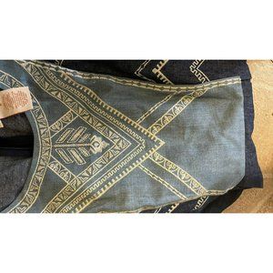Flying Tomato Chambray Lightweight Denim Embroidered Short Sleeve Dress S Aztec.
