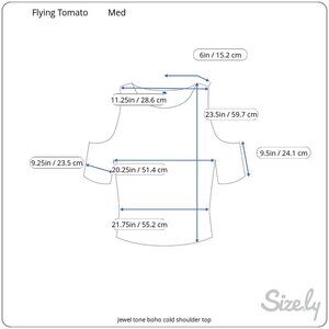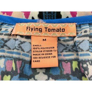 Flying Tomato Colorful Boho Print Semi Sheer Jewel Tone Cold Shoulder Top M