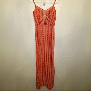 Flying Tomato Coral Tie Dye Women’s Boho Embroidered Maxi Dress SZ S