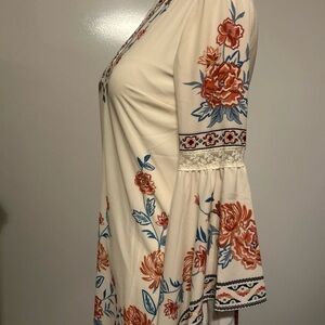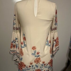 Chic cream skirt featuring bold red and blue patterns. Ideal for stylish outings.