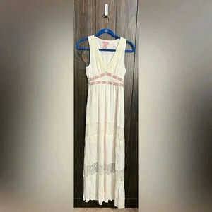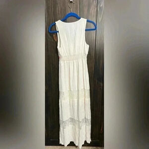 Flying Tomato Cream Empire Embroidered Waist Maxi Dress W/Lace