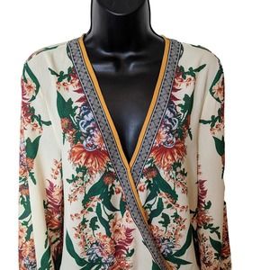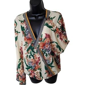 Flying Tomato Cross Front Floral Blouse with Bell Sleeves Size Small