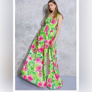 Flying Tomato Dress Maxi Floral Pink Green Size S