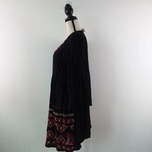 Flying Tomato Embroidered Black Midi Boho Cottage Dress Sz L