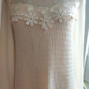 Flying Tomato Embroidered Flower Ivory Tassel Crochet Bohemian Mini Dress Size S