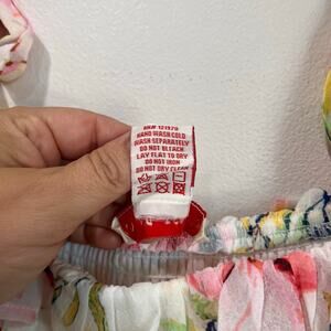 Color/Pattern: White with pink, green, and yellow floral print