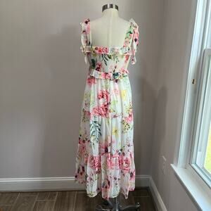 Flying Tomato Floral Maxi Dress Smocked Bodice Tie Straps Midi Sundress Sz M