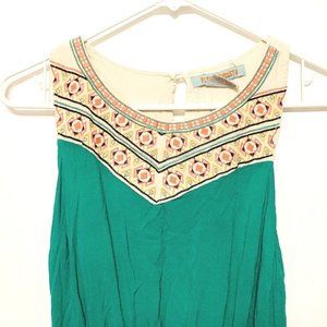 Flying Tomato Green Southwestern Print Dress Size M Embroidered Sleeveless
