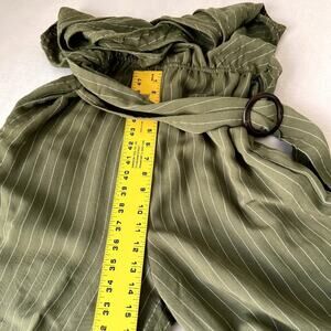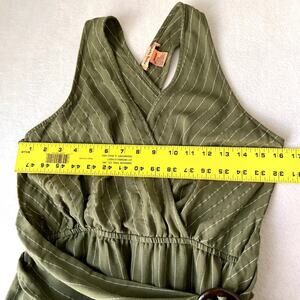 Flying Tomato Jumpsuit Women's M Green Striped Belted Cross Cutout Back V-Neck