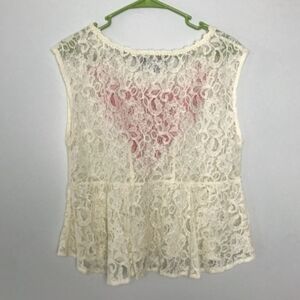 Flying Tomato Lace Blouse Women's Size Large Coral Embroidery Button Detail NWOT