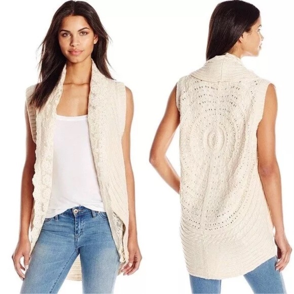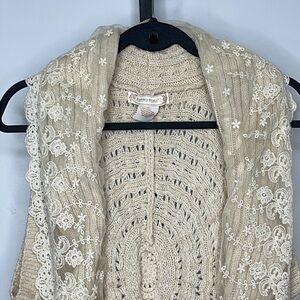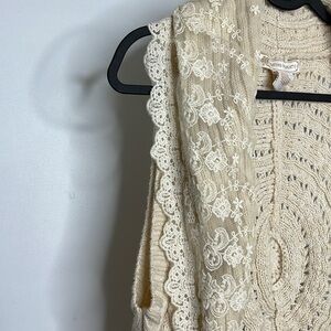 Flying Tomato Lace Sweater Vest Cardigan Ivory Women's Sleeveless Size Small