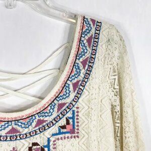 Flying Tomato Medium Dress Mini Embroidered Lace Lined White Boho CrissCross