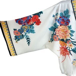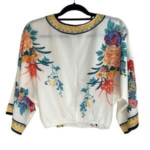 Flying Tomato Multicolor Floral Surplice Neck 3/4 Sleeve Blouse Size XS