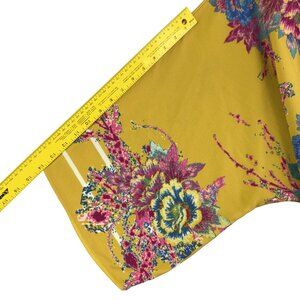 • Color/Pattern: Golden mustard background with bold magenta, teal & ivory floral design