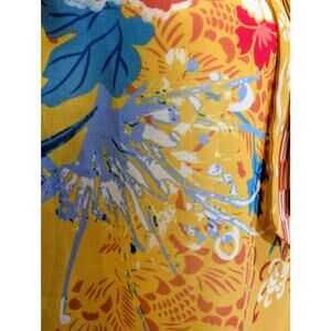 Flying Tomato Mustard Floral Print Tie Neck Blouse Size S