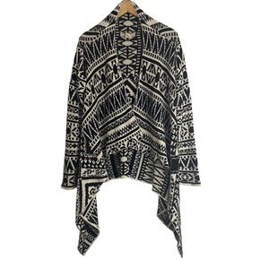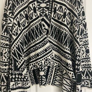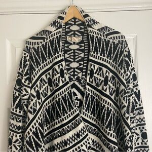 Flying Tomato Open Cardigan Duster Black White Aztec Southwestern Geometric Sz M