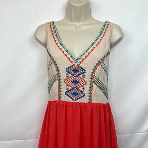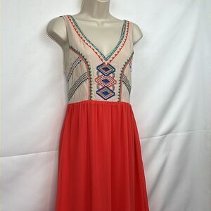 Flying Tomato Orange and beige embroidered southwest Maxi Dress size Medium EUC